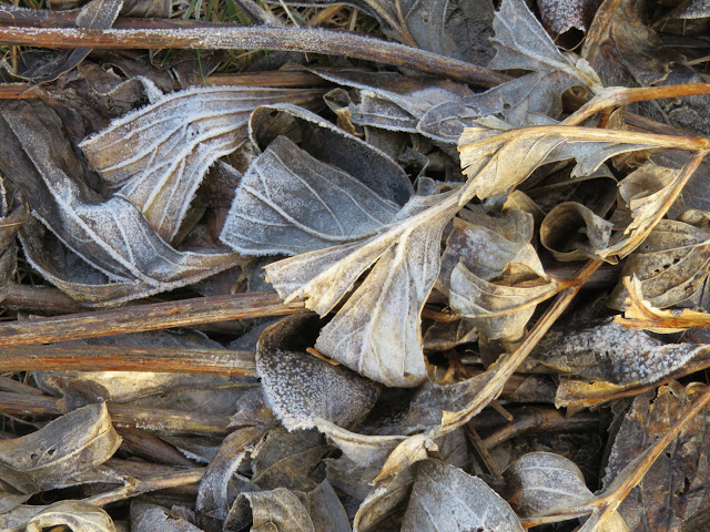 We walk along the dyke at the sea edge, each rose hip a huge ball of snow on a spindly branch. There's just enough wind that we can hear the water ripping and rushing into the shore and out again.